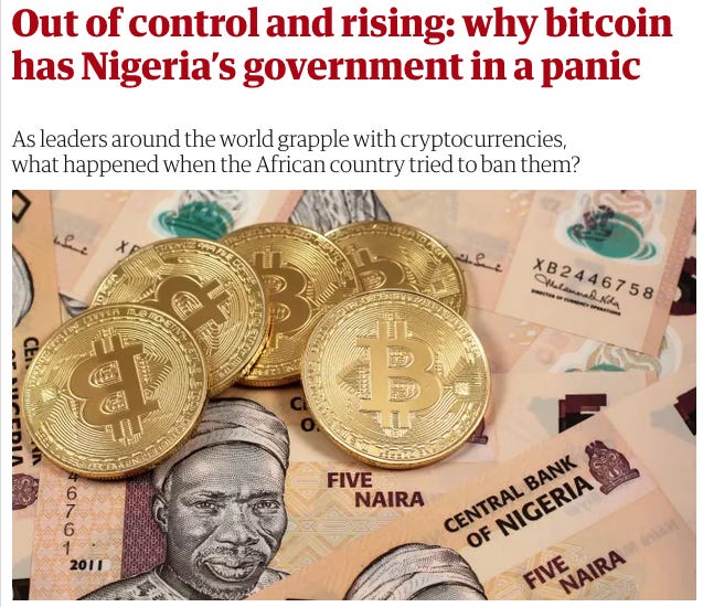Moral outrage toward politicians, government officials, and bureaucrats is increasingly evident today. As we saw leading up to the collapse of The Medieval Church, this “canary in the coal mine” is typically a reliable indicator of imminent institutional change. Compulsory lockdowns, the threat of mandatory vaccinations, and rampant fiat currency inflation are all overt attacks on the property of citizens. As people awaken to this war on their property, they will naturally seek to hold the only property unassailable by parasitic political institutions. When Bitcoin is fully monetized, human hierarchies will be more fruitfully premised on competence rather than coercion, and the nation-state model of the 20th century will finally fall into oblivion. Some nation-states, like Nigeria, are already awakening to the existential threat posed by Bitcoin: