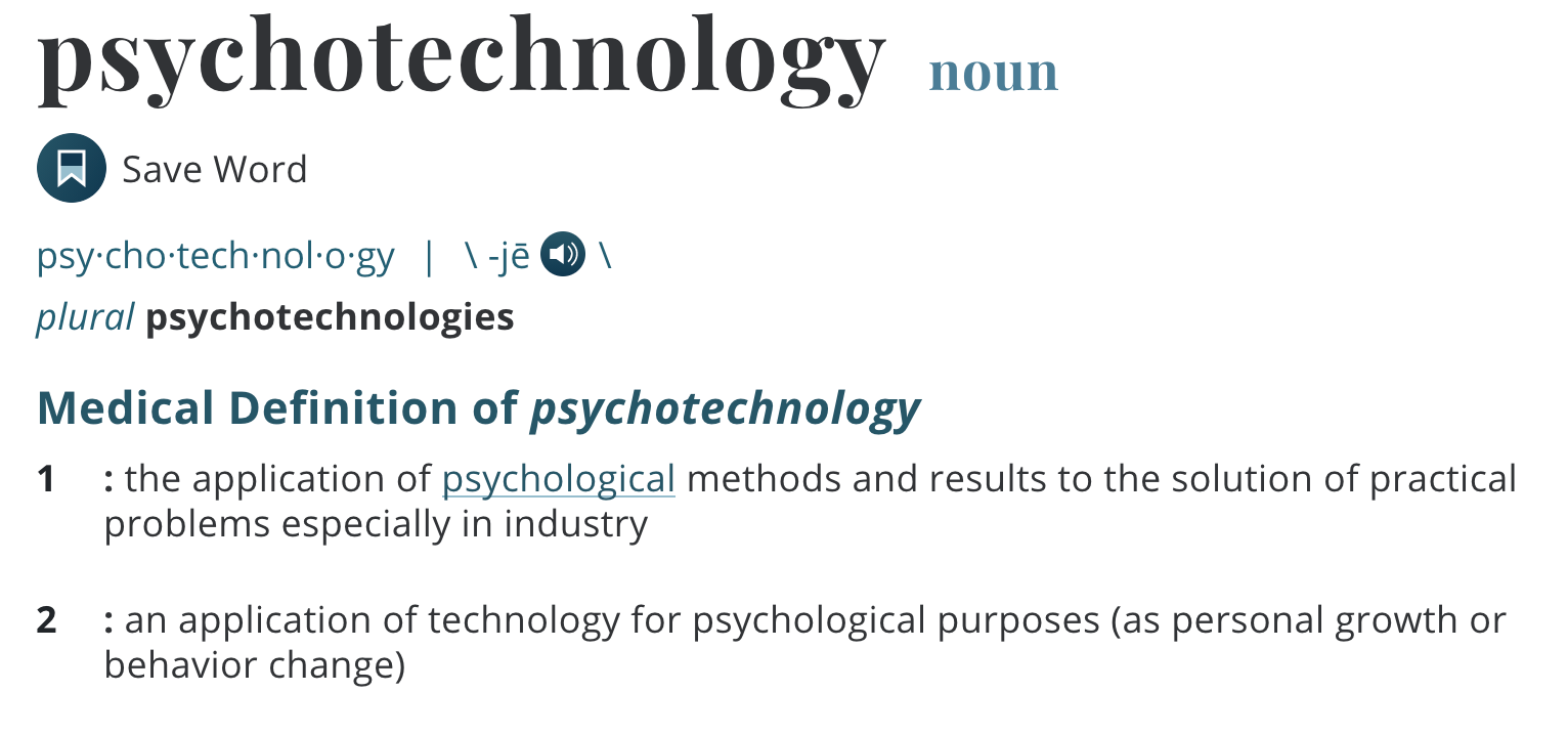 Technology—defined here as the systematic use of tools—shapes the day to day actions taken by humans. As the only animal with a sophisticated conception of time, humans spend many of their waking hours engaged in work making preparations for an always uncertain future. Work involves the usage of tools, the making of tools, the making of tool-making tools, and so on in ever-longer and more complex production processes. Over long enough sequences of production, repetitive tool use fosters adaptive changes in users. A workman who swings a sledge hammer daily will develop exceptionally strong muscles and swinging technique; an office clerk who spends their days preparing emails will develop the ability to type many words per minute or perhaps even carpal tunnel syndrome (see material engagement theory). But not all tools and technologies are tangible. Some “technologies” are purely mental constructs and can, thanks to neuro-plasticity, have an even more pronounced impact on human adaptation. So-called psychotechnologies are non-corporeal implements that improve human productivity by systemizing cognition: